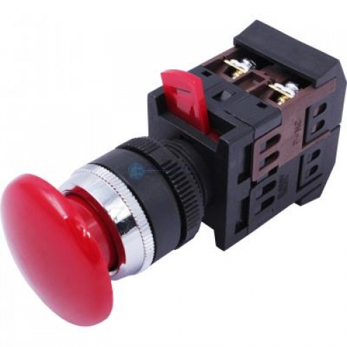 Кнопка AEAL-22 (Грибок красный), Кнопочный выключатель, (с фиксацией)НЗ+НО